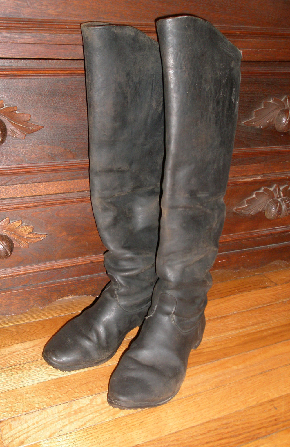 German Cavalry Boots are the issue boots for enlisted men of the Cavalry, Field Artillery and Train Troops. Based on photographs, this boot type must also have been worn by Foot Artillery draft horse team drivers. This is not the pattern generally issued to the Cuirassier, Hussar, Jaeger Zu Pferde and Schweren Reiter. These branches had their own boot types. These boots are 57cm in height and have a line of distinctive horizontal stitching several centimeters above the ankle.