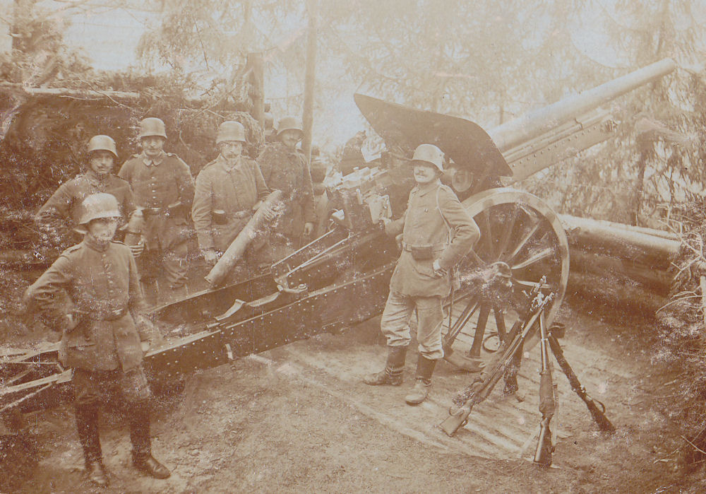 Below: 10cm Kanone 1914 with crew wearing steel helmets in a late war photograph
