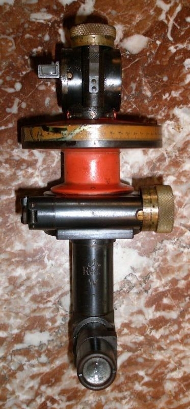 Above: This is a German Goertz manufactured panoramic sight for Foot Artillery with a 0-5760 scale, which places it between 1893 and 1916. Further the panoramic scope did not come out until 1913 so there is a very narrow three years of production of this exact type. The only difference is that the numbers are in modern Arabian-Indic style script (these are not Arabic Numbers as Western countries now use)