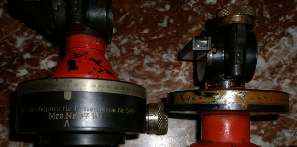 Below: On the right is an example of a German Foot Artillery 21cm panoramic sight with a 0-5760 scale in Western European style-old Arabic numerical script and to the left is the Ottoman Foot Artillery panoramic sight with the same 0-5760 scale in modern Arabic-Indic numerical script