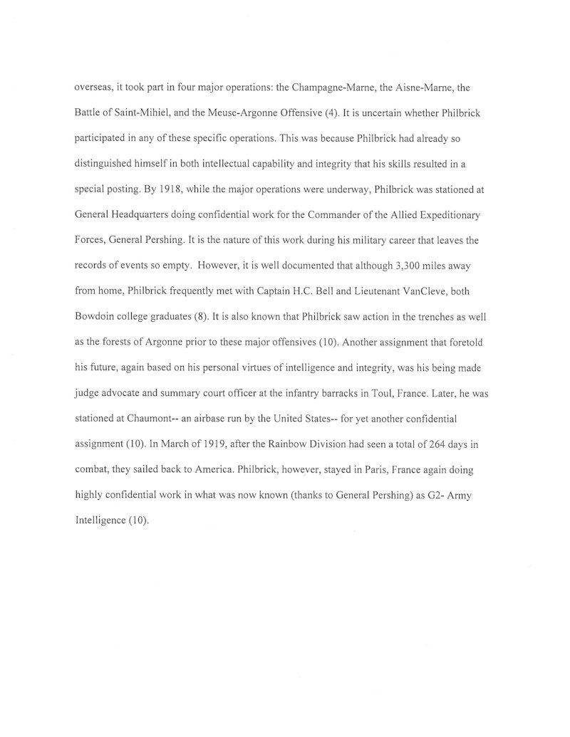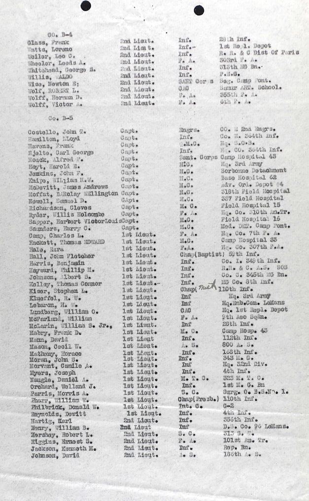 Below: The July 5, 1919 transport record for Brest Casual Company No. 8. 1LT Donald W. Philbrick is listed as G2 (Intelligence Section) HHQ (Headquarters, Headquarters Company) Corps. Notice that Philbrick’s name is marked with Detached at Brest. I think this means he was off loaded at Breast France and the ship continued on to Hoboken, NJ. USA with the remaining passengers