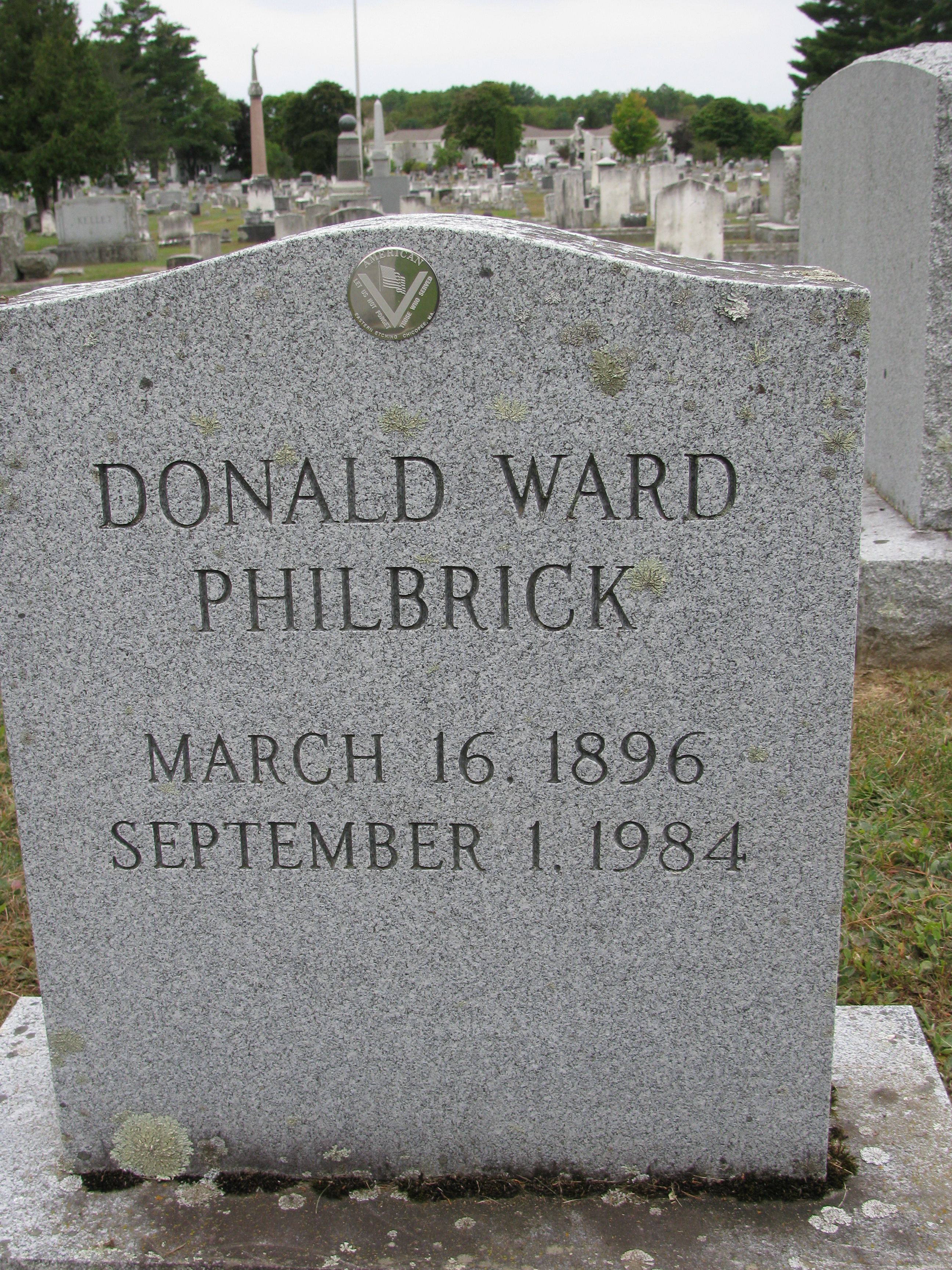 Below: Donald Ward Philbrick’s grave, marked March 16. 1896 September 1. 1984 in Skowhegan, Maine