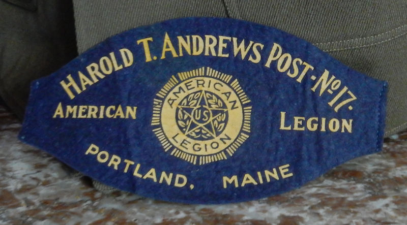 Below: Donald Philbrick’s American Legion armband from Portland, Maine’s Harld T. Andrews Post, No 7. Donald Philbrick was a member of many clubs and fraternities