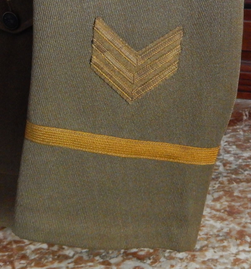 Below: Detail of the three gold overseas chevrons and officer cuff band