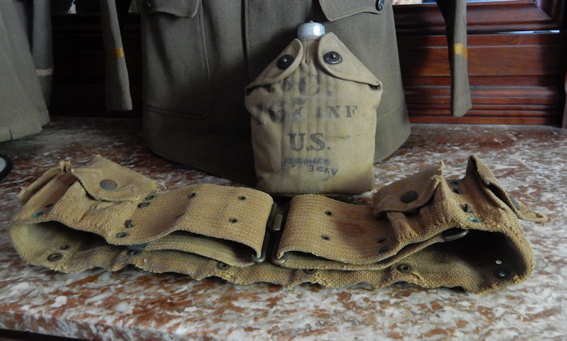 Below: Canteen and Mills belt from 1LT Philbrick. The canteen cover is well marked C. 167 INF US