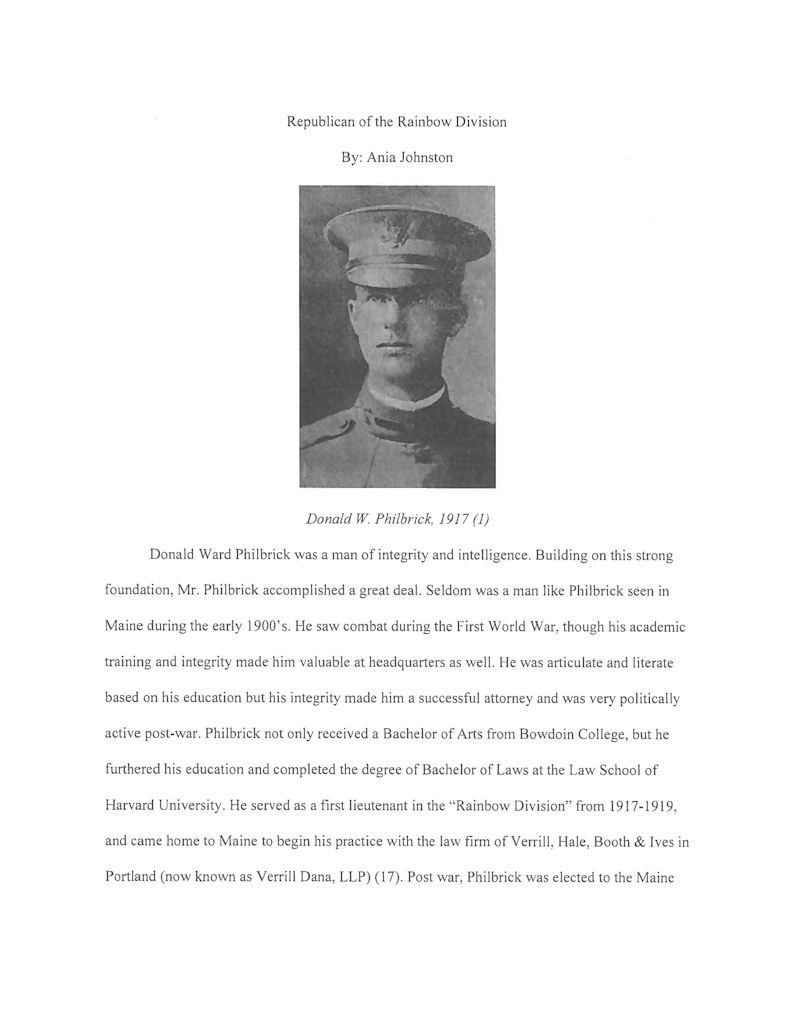 Below: A fantastic article on Donald W. Philbrick written by Ania Johnson and carried online by the BHS Library, Brunswick School Department