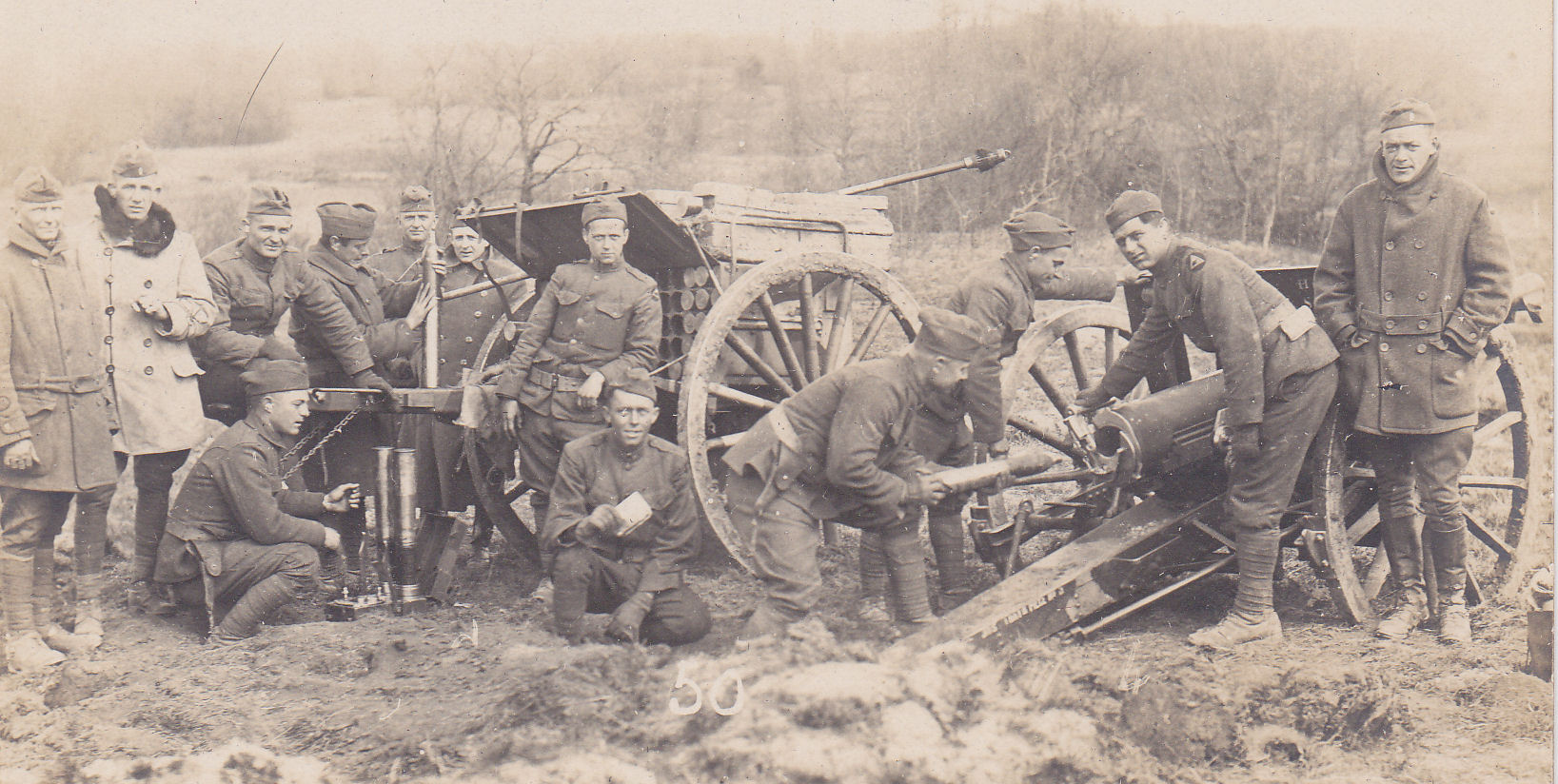 Above: Original photograph of an M1918 Caisson with camouflage paint