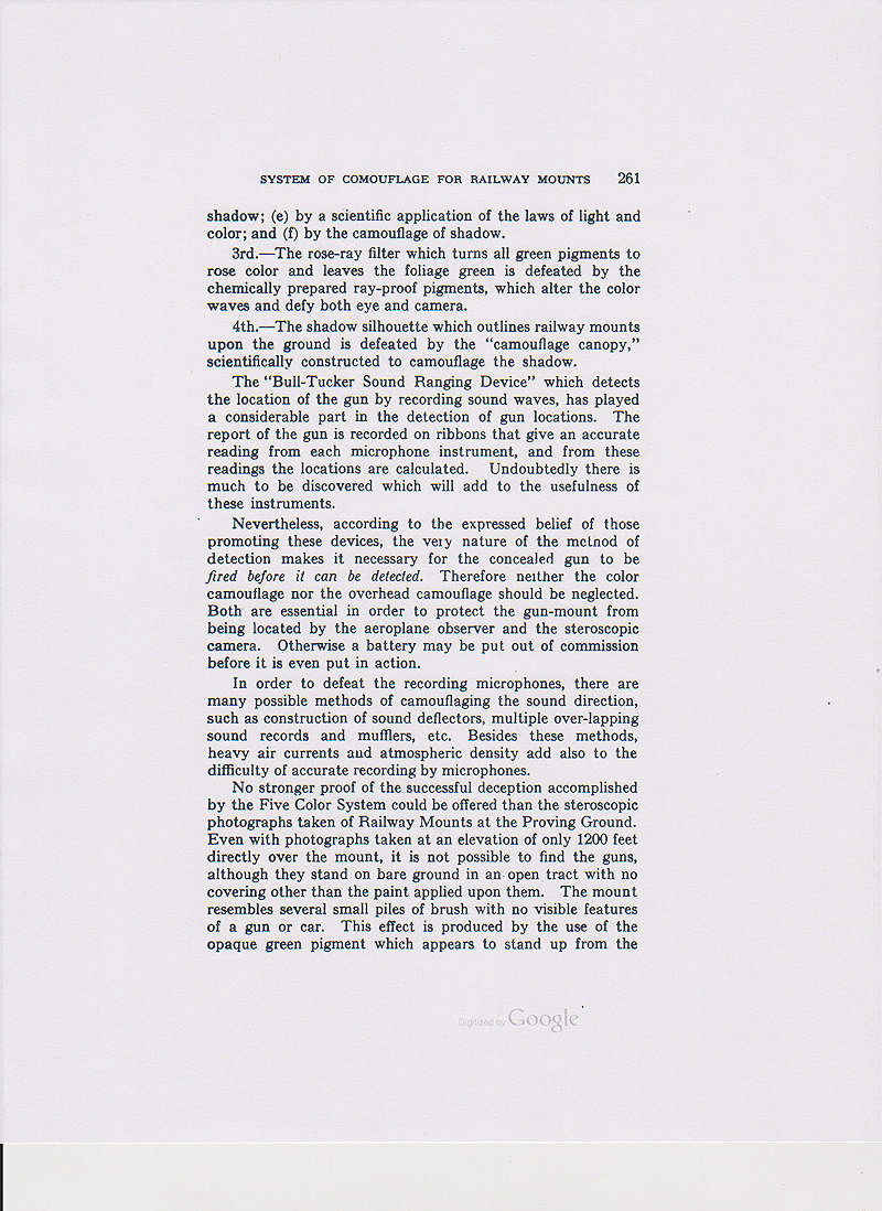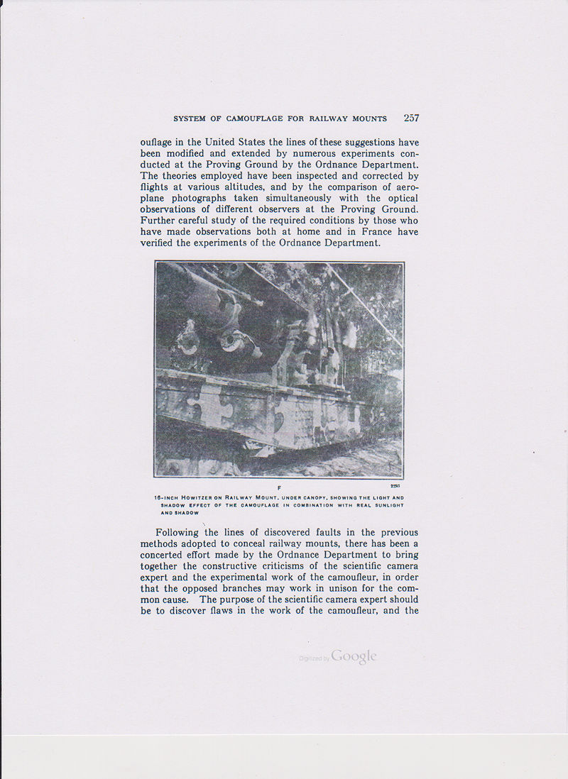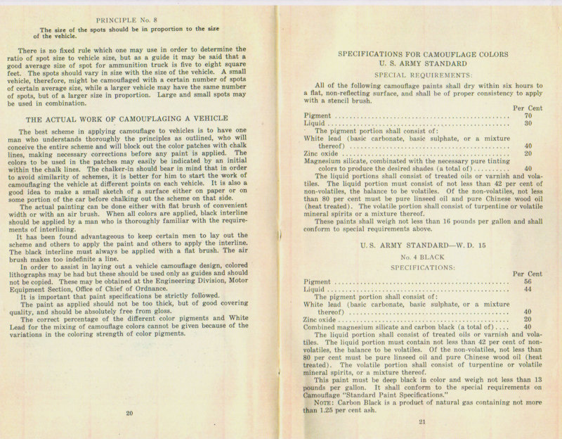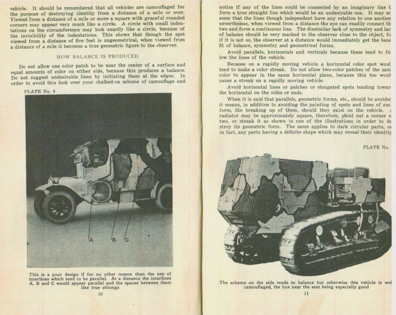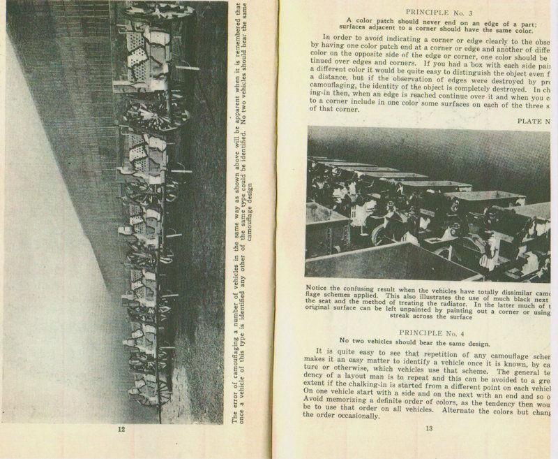The Painting Instruction for Camouflaging Vehicles below calls out the equipment painted in the same pattern, as was done in the American Car and Foundry factory, as an error. (See page 12 below) However, this is what the equipment actually looked like in service. In the reference below, the Three-Color System is not named but is described. (see page 7) Also notice that the reference below contradicts the Journal of U.S. Artillery article above counting black as a color not as is correctly stated in the article above, as a shade. (See pages 8 & 9) The reference below also makes no mention of the Five Color Camouflage System nor does it discribe it.